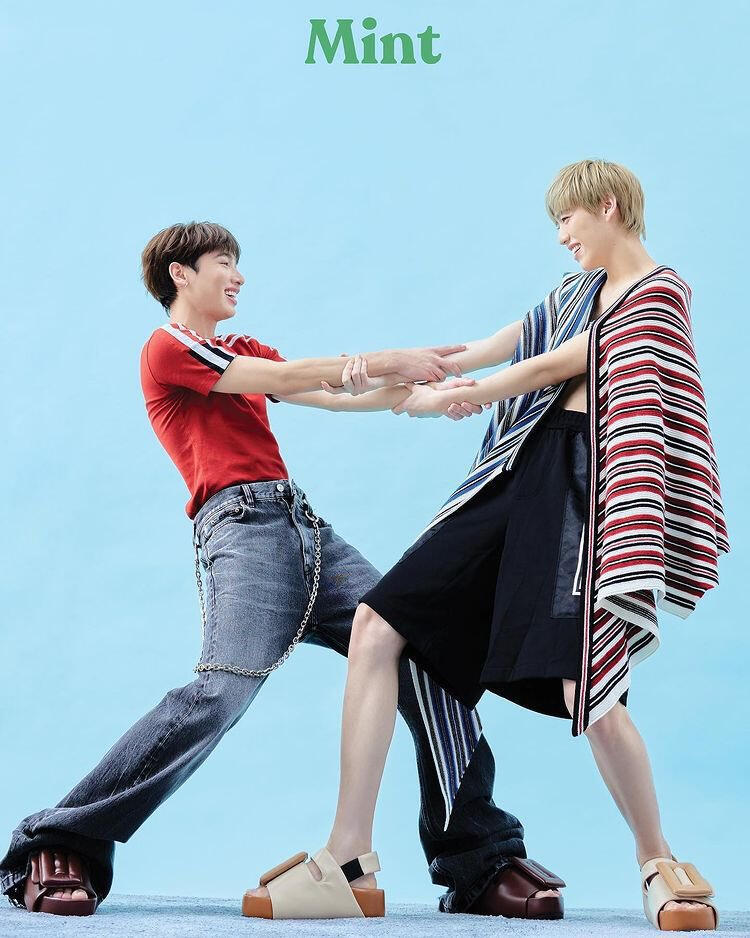 Off : For me, dressing style depends on the person's inner which is full of confidence. If you dress well, but your inner isn't good, people would be confused. If you dress casually but have confidence, even if someone criticizes you, you wouldn't care because you were already confident going out of your home like that.As for the person whose style I like, it would be Pharrell Williams. I feel that Pharrell is a very talented person. I've been listening to his songs since I was young. He's a singer, designer, and now he works with Louis Vuitton as the Men's Creative Director, and he has also worked with Adidas and Chanel. He's amazing.Gun : Personally, I don't have an idol I follow that much, but I like to follow Westerners who dress well, both men and women. I like to browse. If I like a look, I'll save it as inspiration for my own dressing style.For me, I think dressing up is a stress reliever. If one day I'm at home and feel stressed, I would take some clothes I have and wear them. I think choosing an outfit or looking for items to match with each other is a way for me to relieve stress.
