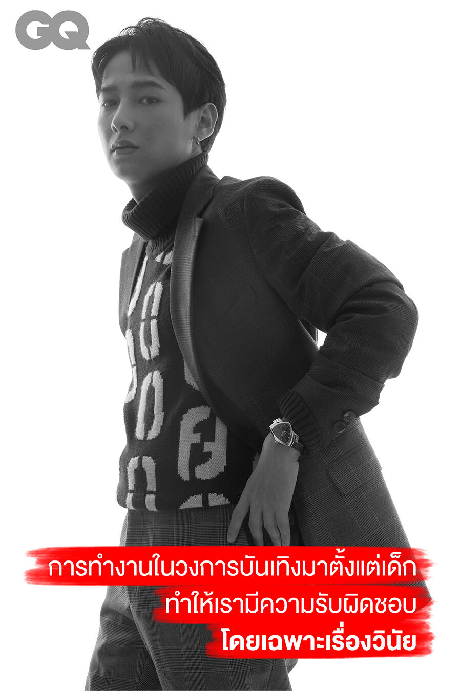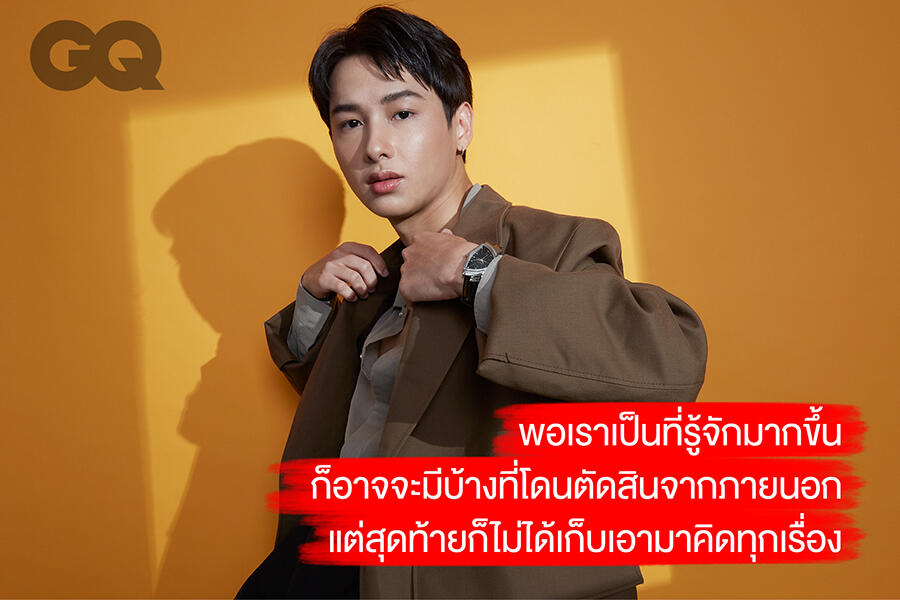 GQ: Which role or project did you feel acknowledged in or became a turning point in your acting career?As an actor, it's the series NOT ME (He's...Not Me). I've worked with P'Nuchy (Anucha Boonyawatana - NOT ME Series Director). It's like she knew a trick on how to utilize me and thought me several things in being an actor - focusing on bringing out the inner emotions. I call that my turning point in acting. And I've always used that trick in every series I've starred in after.GQ: What is the standard for an acting career in your opinion?It's punctuality and responsibility. Being an actor requires doing homework and reading the script because during work hours, it's not just me working alone. There are dozens of crew members - from electricians, camera team, and sound team. If I falter, it will make the filming set team unable to work. As an actor, I shouldn't let things like this happen.