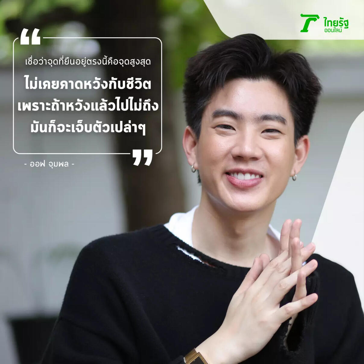 "I'm someone who plans my life. For example, from the age of 23 when I entered the entertainment industry until the age of 33, now my life has been better. It's like I have goals in several aspects. For instance, one, I know that I work and what do I want? First is watch, and I got it. Next is condo, and I got it. What is next? A car. I'm able to buy a car now.""The next step is a house. I'm currently building one. I've already gotten 3 things from before which is quite fast for working in this industry. I started my 10th year building a house, what would I do next once the house is done? I must have another car and keep growing. I still don't know where I'll end, but I try to do my best every day so that in 10 years, I could look back like, 'Oho, my life has come so far.'" As we heard Off finish speaking, we wanted to know whether he was worried about being in his 40s in the next 10 years. He immediately responded."It's inevitable. Don't worry about getting old, you're going to get old anyway. (laughs) I feel that as we age, our responsibilities increase which lessens our time. When I was young, I was confused when adults say that time flies by so fast. Yeah, it's really fast. I've only realized that I've been working for 10 years. I've once read many interviews of several people. They asked seniors, 'If you could go back in time, what would you do?' Many said that they'll take care of their health well, meaning it's really important at that point. We must take care of ourselves as best as we can starting now. And if you ask whether there is anything I'd like to go back to and fix in the past 10 years, there's none because I live my life to the fullest every day and I'm happy every day." He explained.
