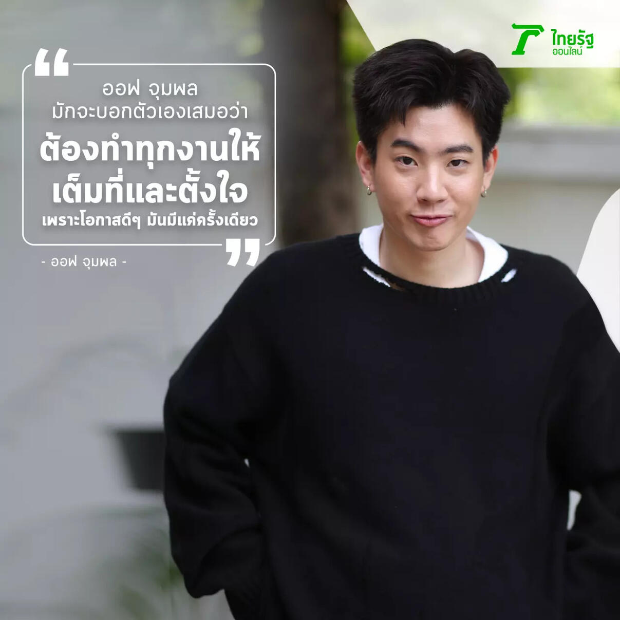 Many people say that being a host is a difficult and challenging job because their main duty is to run the show and pay attention to both guests and hosts themselves. Especially with live shows, Off says solving problems on the spot is very important."Hosting live shows helped me gain more skills in working in the industry. We must be quick-witted and able to handle situations well. This enabled me to host events more confidently and it also had a positive effect on my acting." Off added.