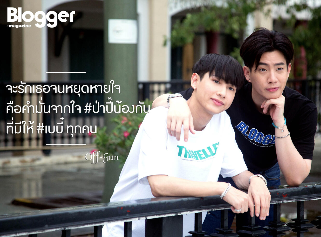 Q Tell us about the other person's charmsOff: Ok. Gun is hardworking and has amazing taste in fashion!!Gun: Papii is determined/driven and he likes to play jokes which makes others have fun as well. He talks all-day in the makeup room.We can hear the laughter from outside the room.Off: LOL was I too loud?Gun: He likes teasing others LOL