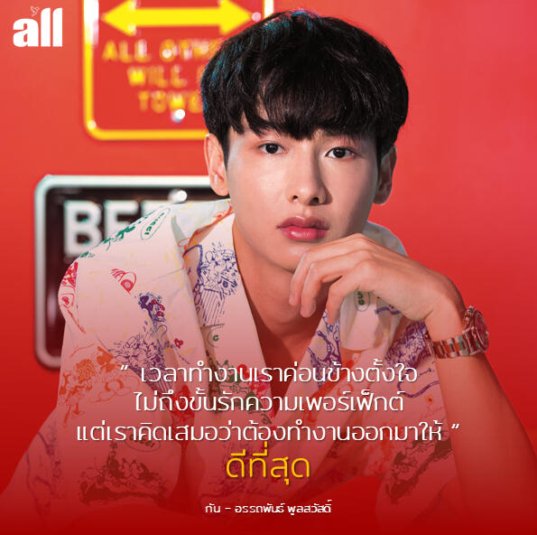 GUN: Honestly I feel I've been doing this alongside my youth too. If I were younger than now, work wouldn't be as tiring. I could go see my friends, travel, and live my life.MAYA: What about "Gun Atthaphan's" identity? Has working in the entertainment industry made you lose your identity?