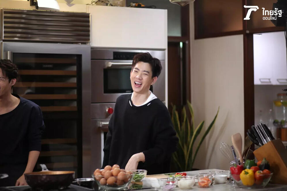 Off: I think Gun is the middle point of his friends both during work and when hanging out. Let's say we've finished our work and go to eat together, it's normal for him to ask 'Where are we going? Where should we go?' If someone isn't going, Gun has a way of convincing us to come along or if someone goes elsewhere, Gun will convince people to go to the same place. He's like the middle point for us to hangout or eat together.
